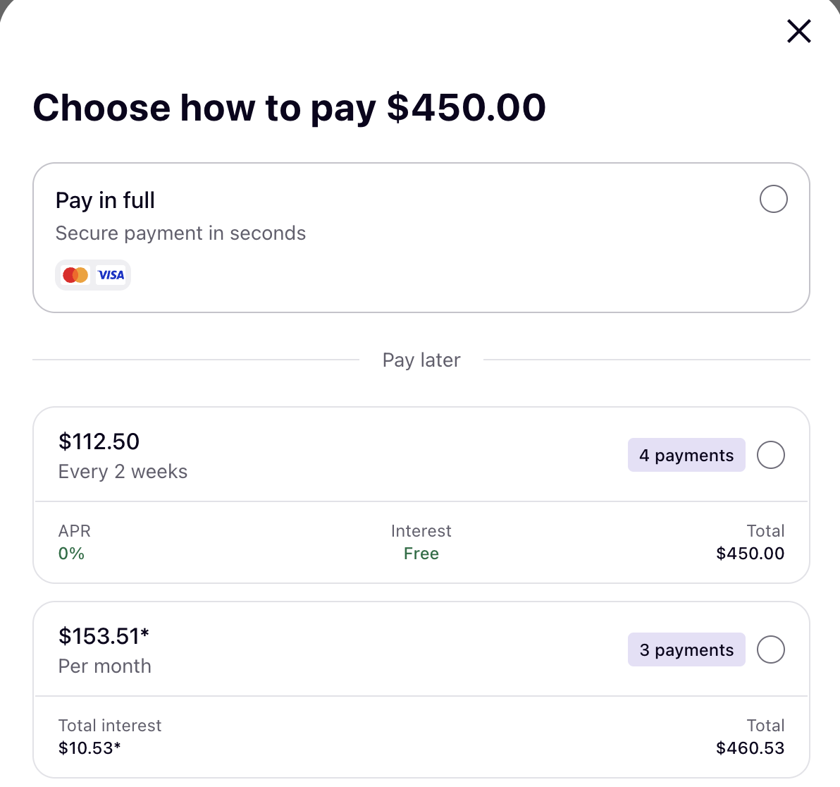 I have partnered with Klarna to offer a no-interest payment plan (4 payments over 8 weeks) and low-interest extended payment plan (up to 12 months).
